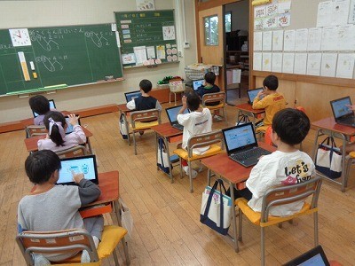 授業の終わりには、AIドリルで、確認していました。