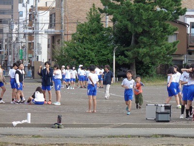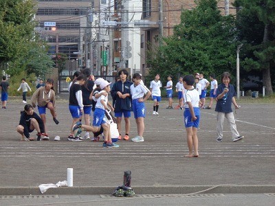 昼休みにはグラウンドコンディションも良好になったため、外で活動しています。明日のはばたき祭に向け、練習を行っています。