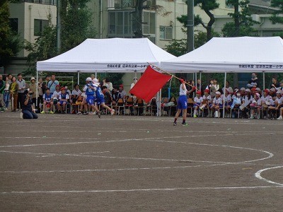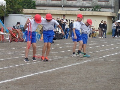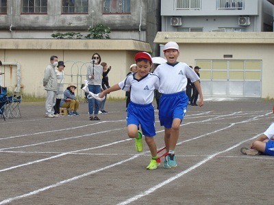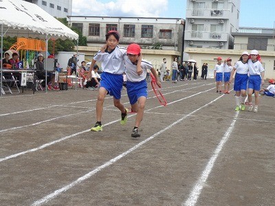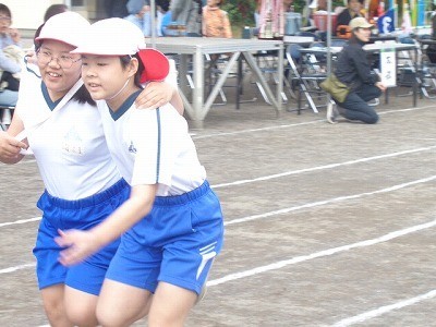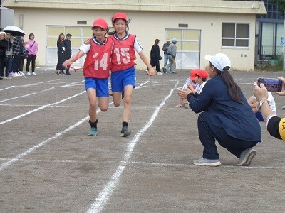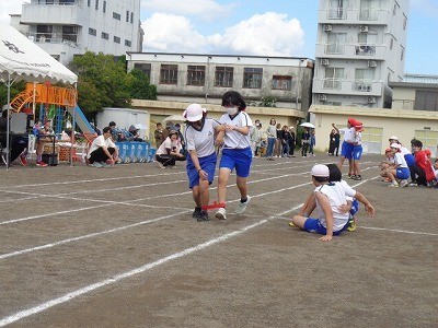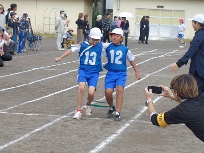二人三脚でリレーです。今までの練習の成果を存分に発揮していました。