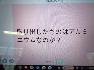 反応した後のアルミニウムは、実験前と同じものなのか、調べる方法を考えています。