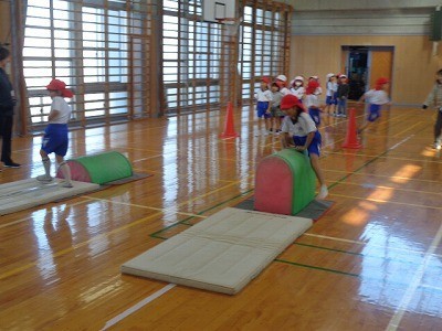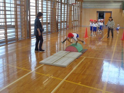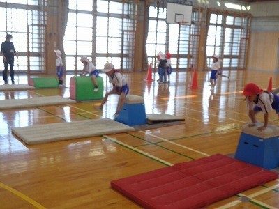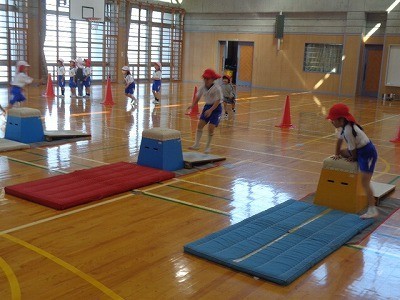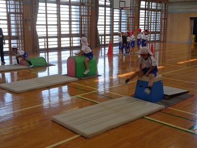 説明をきいたあと、実際にとびばこをとんでいました。