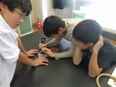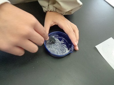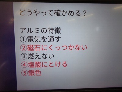 反応した後のアルミニウムと前のアルミニウムでは同じ物質かどうかを実験しながら確かめています。実験内容は、自分たちの考えた方法で行っています。