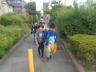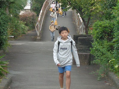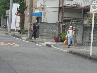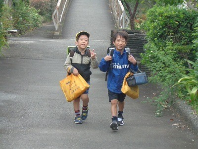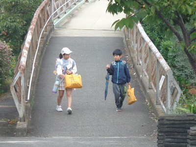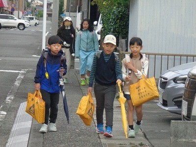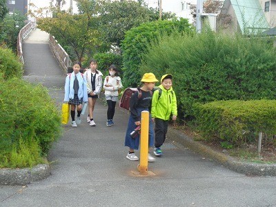 登校のようすです。急に肌寒くなってきました。子供たちは元気に登校しています。