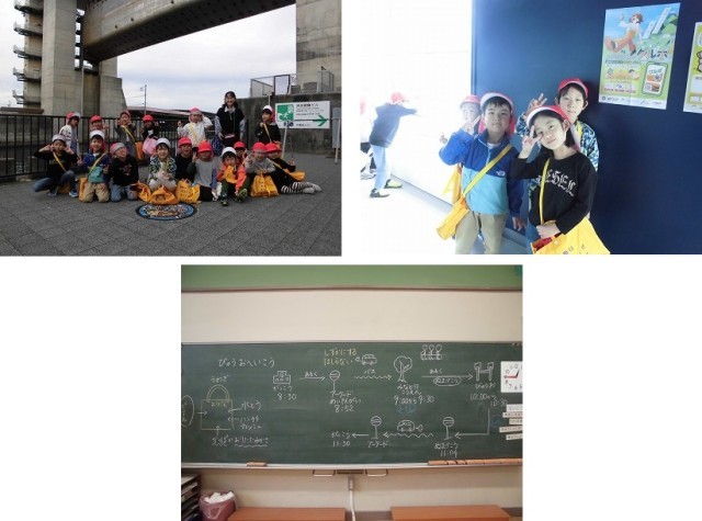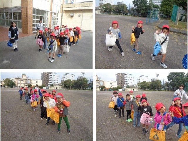 1年生は、校外学習でびゅうおと港口公園へいきました。バスに乗って、現地まで行きます。