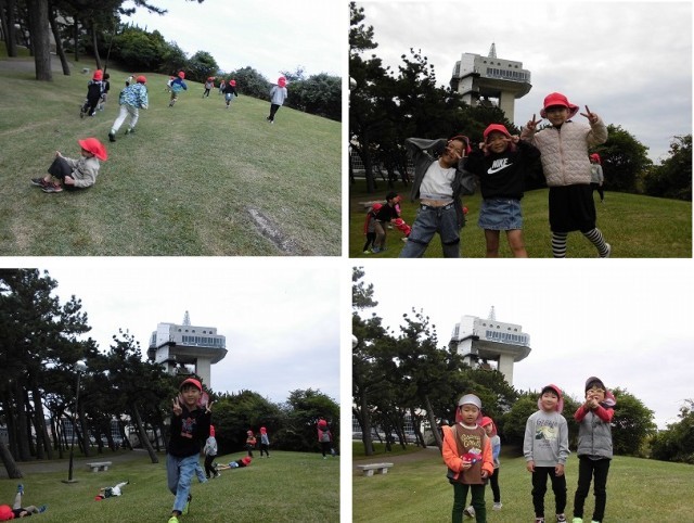 港口公園に着くと、広い野原で思いっきりあそびました。