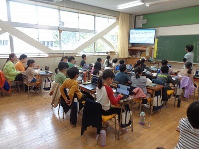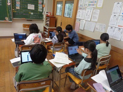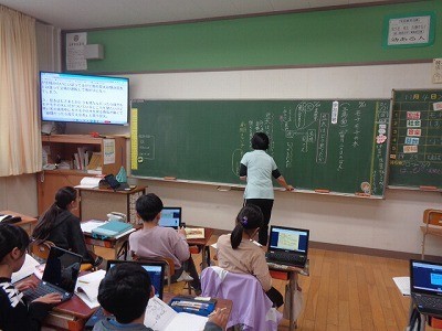 自分たちの考えたことをICTをつかって共有しています。