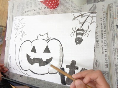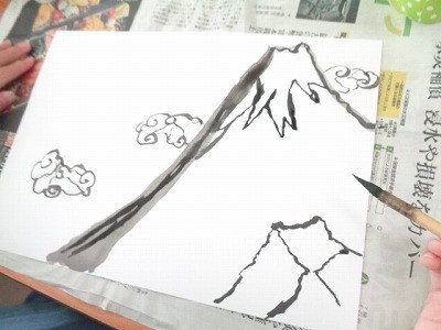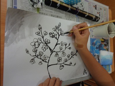 すみを使って、絵を描いています。味のある作品がたくさんできました。
