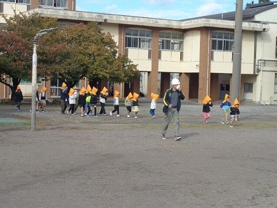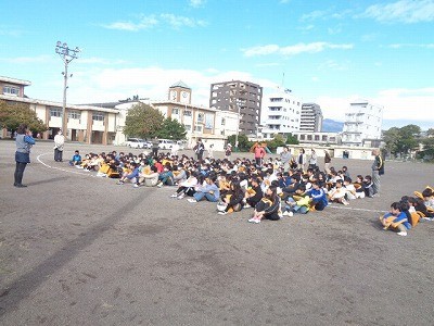 2時間目に、避難訓練(火災)を実施しました。給食室から出火したことを想定して、避難経路や避難方法など実際にどうしたらいいかを考えながら行いました。学校長からは、火災が起きたときには、出火場所の確認や煙に対する注意等を伝えていきました。