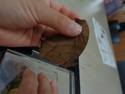 畑で捕まえた、枯れ葉にそっくりなチョウが何かを調べに校長室へきました。