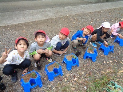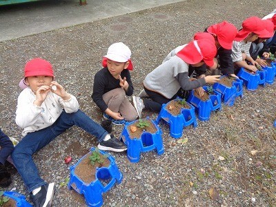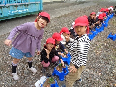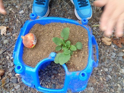ビオラの苗とチューリップの球根を植えています。きれいな花が咲くのが待ち遠しいですね。