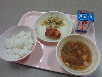 また、唐揚げは、第一小の子供たちが、ペットボトル回収で、リクエスト給食を募ったものです。やわらかくてジューシーでおいしかったです。ごちそうさまでした。