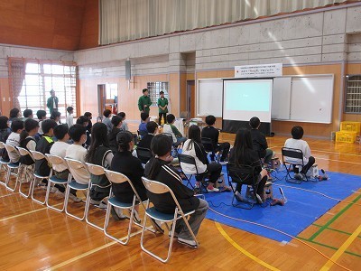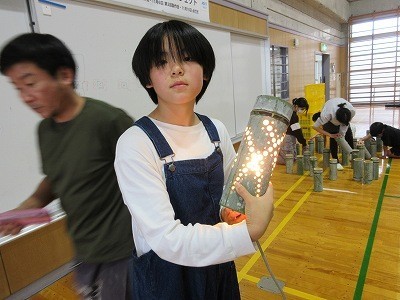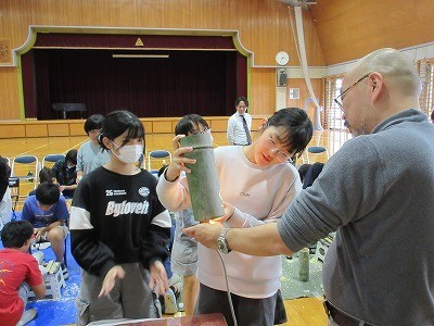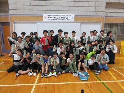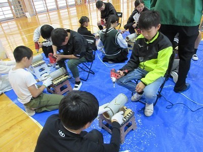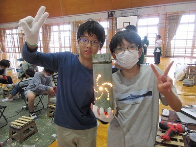 始めに「竹ピカプロジェクト」の説明と「竹とうろう」の作り方を確認しました。その後、たくさんの穴を空けていきました。作っている間、竹のいい匂いがしてきました。