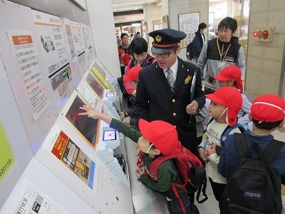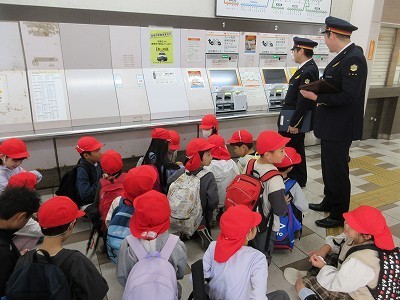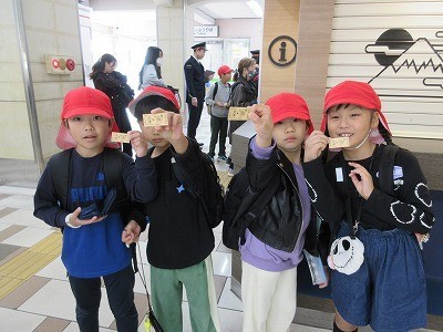 2年生と5組が楽寿園に出発しました。お天気もよく、元気に学校から歩いて出かけました。第一関門となる沼津駅では、駅員さんも見守る中、無事に全員切符を買って、電車に乗ることができました。