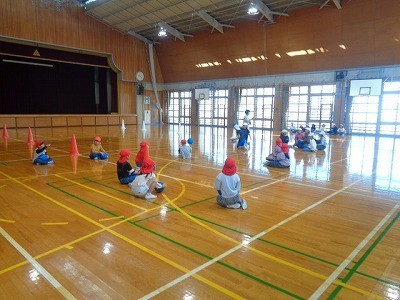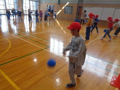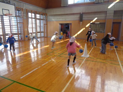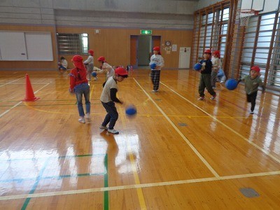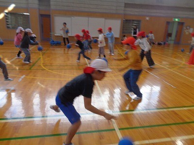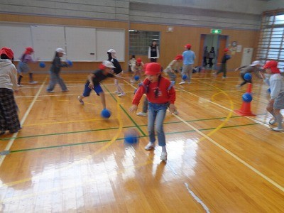 バスケットボールのドリブルの練習をしています。できるだけ長く続けるためには、どうしたらいいか考えながら活動してます。