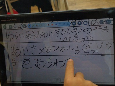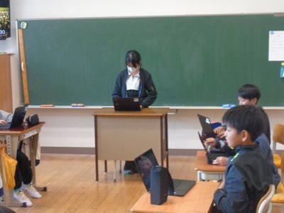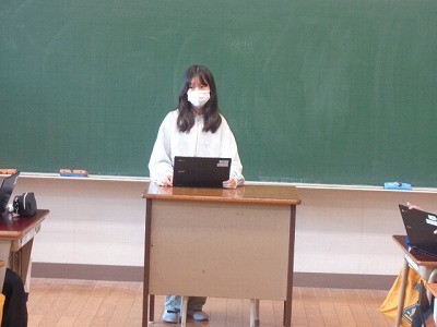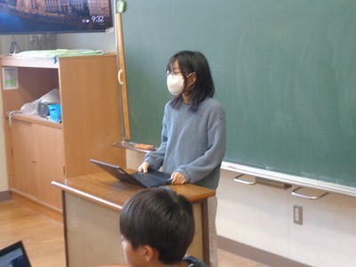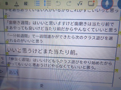 自分で考えた提案を発表しています。「あいさつ」「はみがき」など、いろいろなテーマがありました。