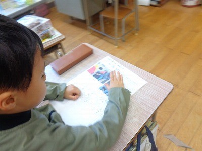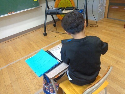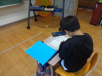 算数の問題を解いています。みんな集中していました。