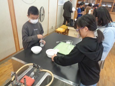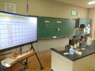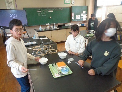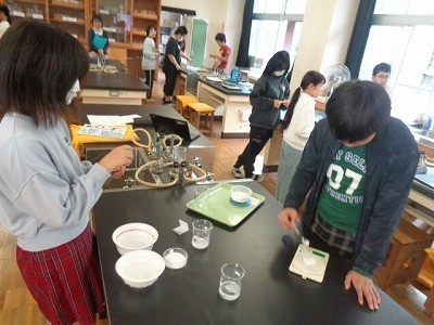 物質には水に溶ける限度があると、前回の実験で確認した後、今度は温度によって溶け方が変わるかどうかを調べています。
