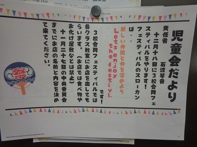 12月18日に、二小、千本小の友達を迎え入れて、フェスティバルを行います。