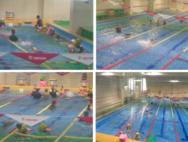 今年初めての水泳です。それぞれのグループに分かれて活動しています。