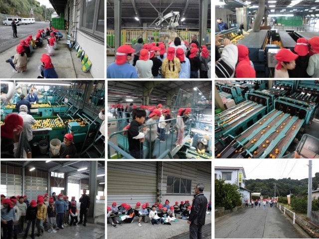 次に、みかん選果場です。みかんの大きさを機械で仕分けています。そしてお土産もいただきました。