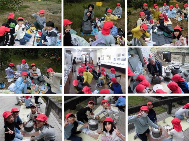 最後に御用邸です。おいしいお弁当を食べた後、石臼をつかって、粉をひきました。楽しそうでした。