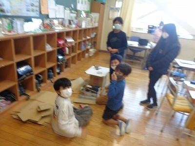 図工のようすです。今日は、8人休んでいるため、10人での活動となっています。