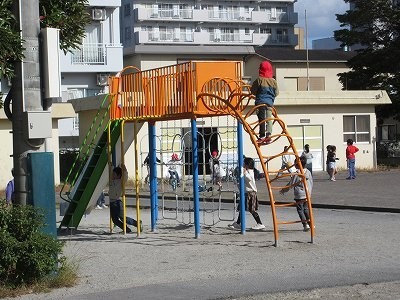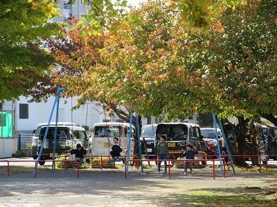 サンタイムの様子です。1、2、3年生が楽しそうに遊んでいます。