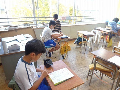 計算問題に取り組んでいます。みんな一生懸命解いていました。
