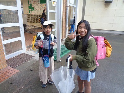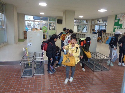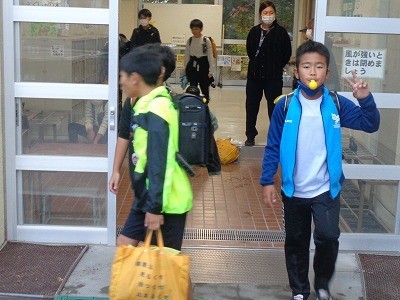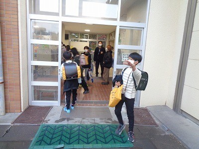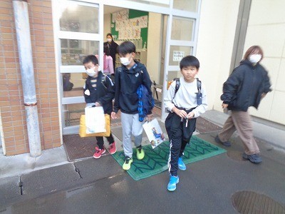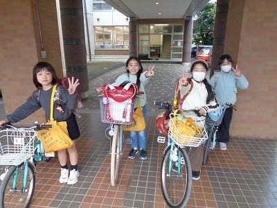 下校の様子です。ちょうど雨もやみました。三年生は自転車を引きながら帰っていきました。
