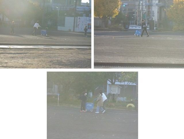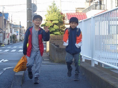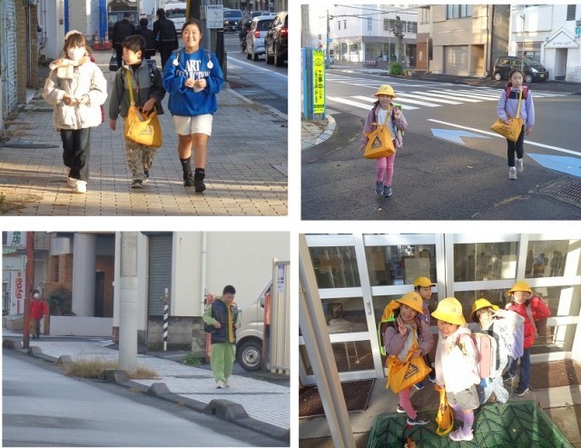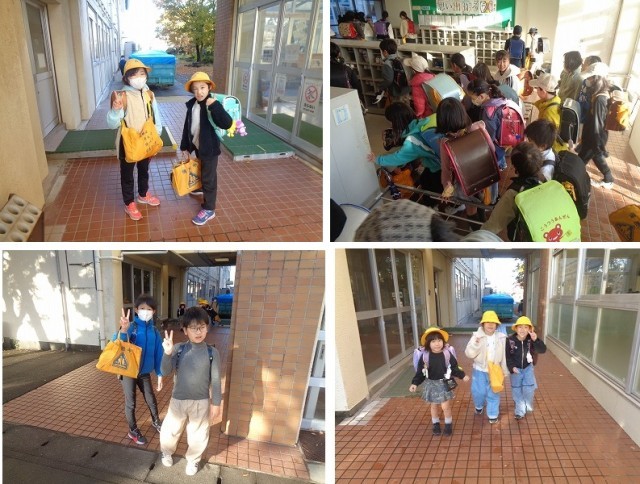 登校のようすです。今日は風が強く吹いていますが、みんな元気に登校しています。2年生と6年1組は今日から復活です。