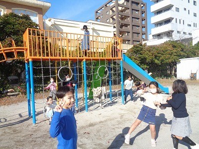 サンタイムのようすです。風もなく、ポカポカとした気候の中、みんな元気に遊んでいます。