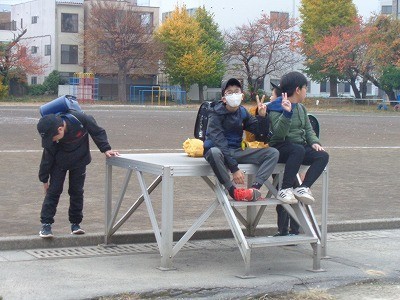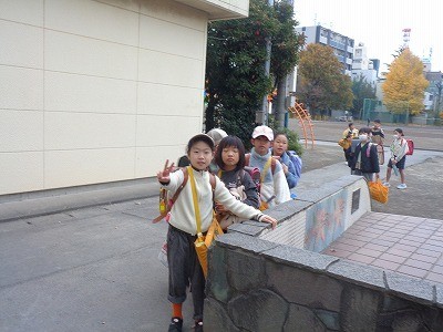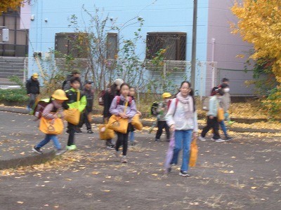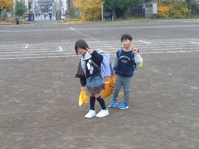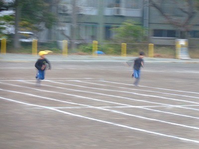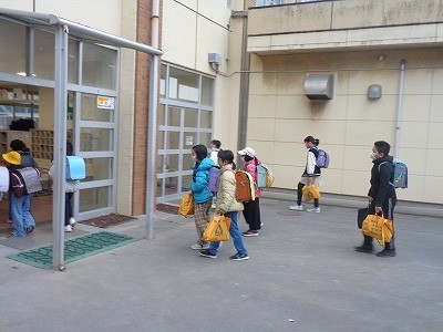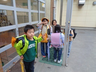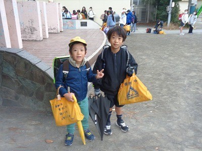 登校のようすです。雨が降りそうな天候でしたが、なんとか持ちこたえました。