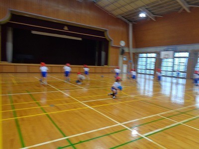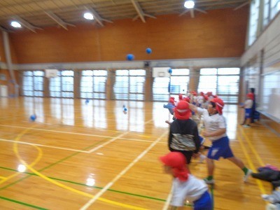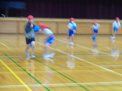 ボールを相手が投げて、もう一人が、舞台に行く前に拾っています。