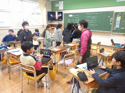 道案内を英語で行っています。ALTの先生にしっかりと伝わるか、確認していました。