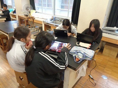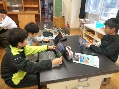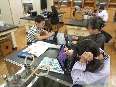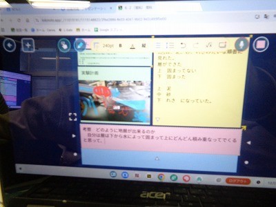 どのようにして地層ができるのか。クロームブックを活用してまとめています。