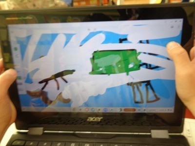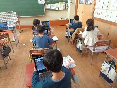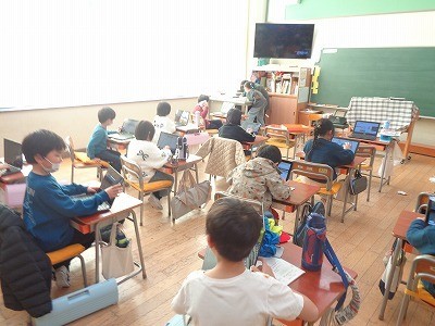 クロームブックを使って、自分の家を調べたり、絵を描いたりしていました。