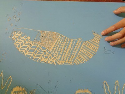 彫刻刀をうまく使って、彫っています。