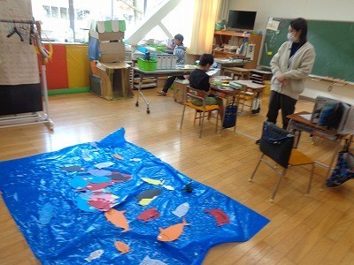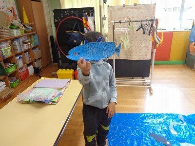 三校合同フェスティバルで行う、魚釣りの魚をつくっています。