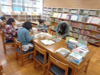 図書館ボランティアさんたちが来校し、本の整備を行ってくださっています。ありがとうございます。