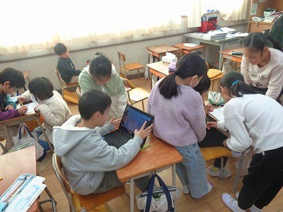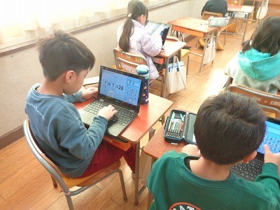 九九の勉強をしています。AIドリルを活用したり、教え合ったりしています。