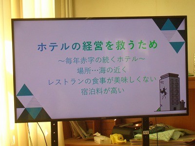 「ホテル経営をよくするためにはどうしたらいいか」プレゼンしていました。