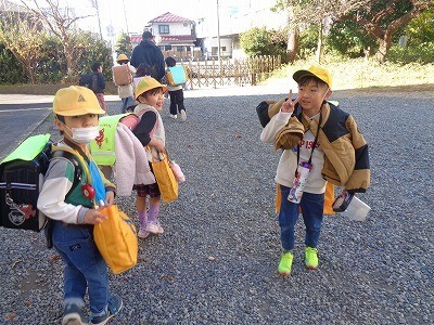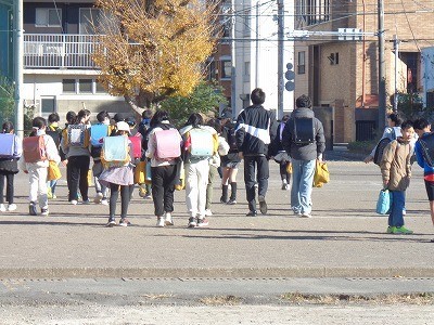 伊豆長岡で強盗が逃走中のため、集団下校をしました。危機感を持ちながらも、みんなでお話をしながらかえりました。