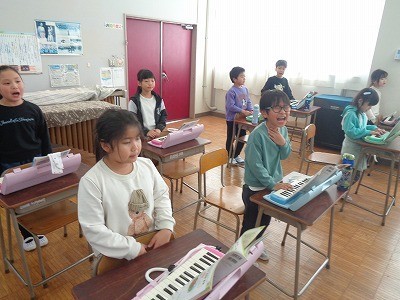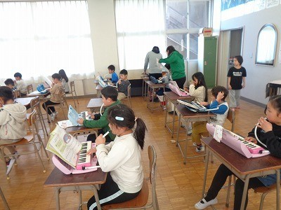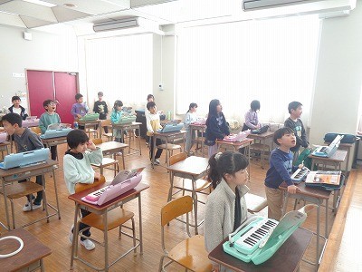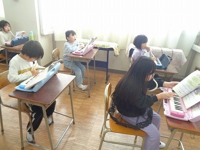 歌を歌ったり、けんばんハーモニカで演奏したりして、音楽に親しんでいます。