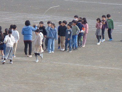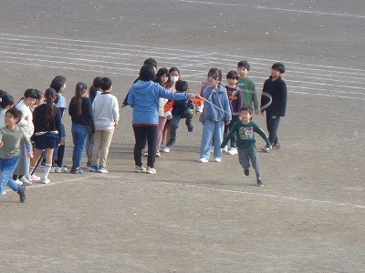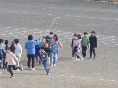 「8の字とび」の練習をしています。みんなで協力して行っていました。