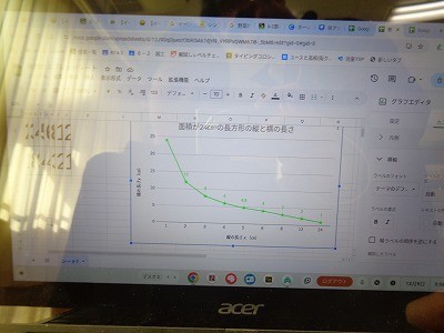 クロームブックをつかいながら、実際にグラフを書いていました。