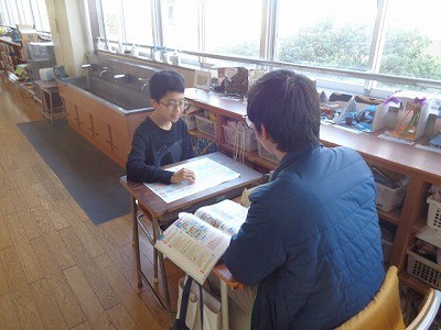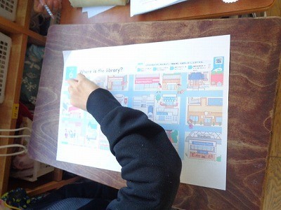 ALTから地図をみて、英語で道案内をしてもらい、どこにつくか考えています。みんなしっかりと理解できていますね。