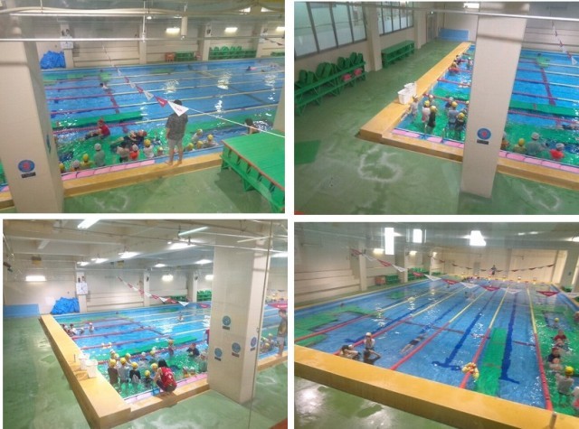 2年生と5年生1組は、インフルエンザの学級閉鎖でできなかった水泳を今日行います。