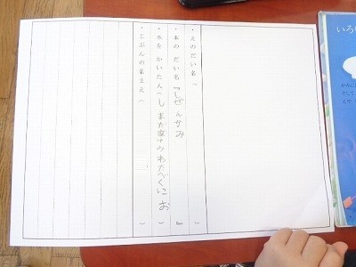 本を読んで、一番心に残った場面を絵や文にしてかいています。