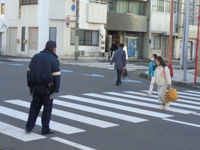 地域や警察官の方々に見守られながら、安心・安全に登校しています。
