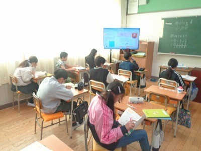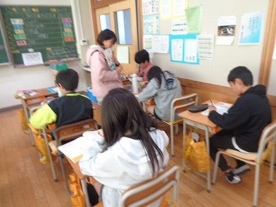 教室の後ろには、3校合同フェスティバルでつかう景品が飾られていました。楽しみですね。